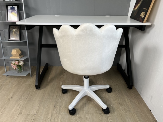 Có thiết kế tựa lưng được làm từ chất liệu nhung cao cấp cho mẫu ghế thêm sang trọng. Phần chân ghế thiết kế xoay tròn với trụ vững chắc và còn có thể nâng lên hạ xuống dễ dàng giúp các nàng chân yếu tay mềm không gặp khó khăn trong quá trình sử dụng.